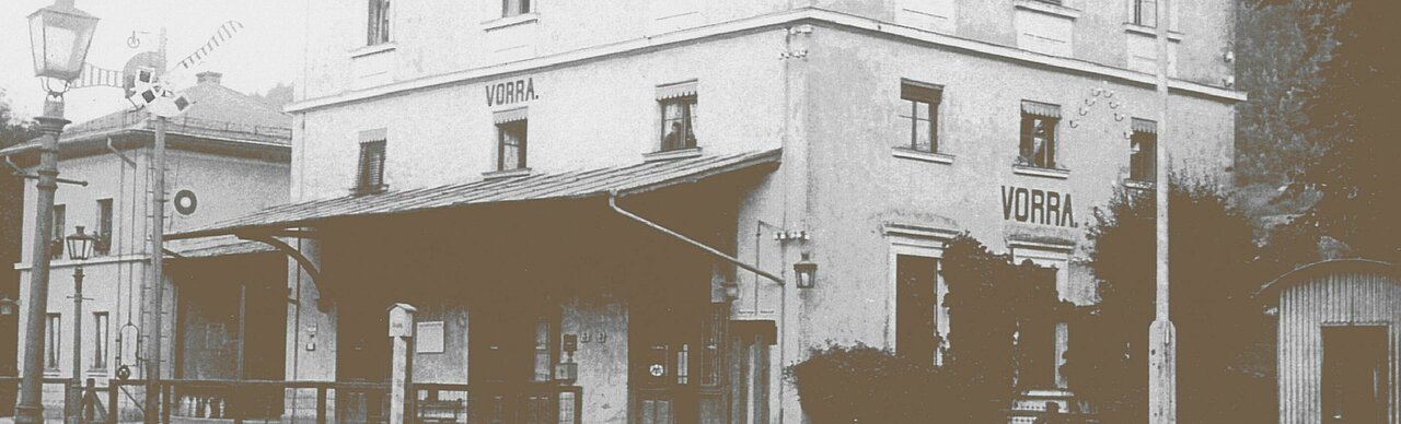 Das ursprüngliche Empfangsgebäude des Bahnhofs Vorra, das 1877 mit der Eröffnung der Bahnstrecke Nürnberg–Bayreuth errichtet wurde, prägte lange Zeit das Ortsbild. Es wurde jedoch 1983 abgerissen und durch einen schlichten Zweckbau ersetzt.