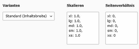 Um mehere Bilder mit dem selben Seitenverhältnis auszugeben, kann dieses über ein separates Feld definiert werden. Dies ist speziell bei der Ausgabe von Bildern eines Ordners nützlich, wenn die enthaltenen Bilder verschiedene Seitenverhältnisse aufweisen.